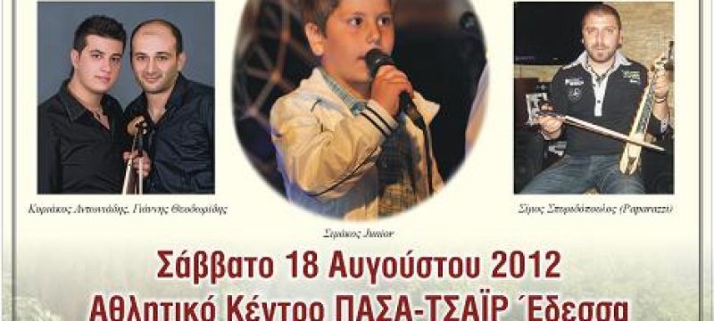 Ο Σύλλογος Ποντίων Έδεσσας ετοιμάζει μεγάλη ανοιχτή εκδήλωση για τις 18 Αυγούστου 2012 στις 8.30 μ.μ. στο αθλητικό κέντρο «πασά […]