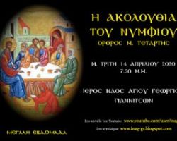 Τη Μ. Τρίτη 14 Απριλίου 2020, στις 7:30 μ.μ., ο Ιερός Ναός Αγίου Γεωργίου Γιαννιτσών θα μεταδώσει διαδικτυακά την ακολουθία […]