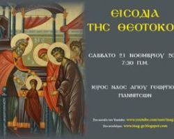 Το Σάββατο 21 Νοεμβρίου 2020, στις 7:30 π.μ., ο Ιερός Ναός Αγίου Γεωργίου Γιαννιτσών θα μεταδώσει διαδικτυακά τον Όρθρο και […]