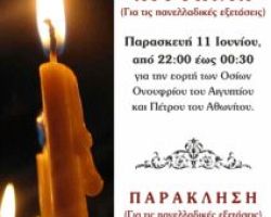 Εν όψει των Πανελλαδικών εξετάσεων θα τελεσθούν στον Ιερό Ναό Αγίου Γεωργίου Γιαννιτσών οι εξής ακολουθίες υπέρ των εξεταζομένων μαθητών: […]