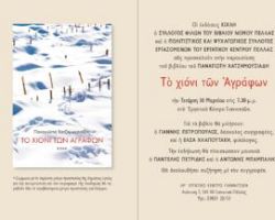 Παρουσίαση του βιβλίου “ΤΟ ΧΙΟΝΙ ΤΩΝ ΑΓΡΑΦΩΝ ” του Παναγιώτη Χατζημωυσιάδη , θα πραγματοποιηθεί την Τετάρτη 30 Μαρτίου στις 7:30 […]