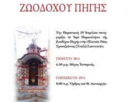 Την Παρασκευή 29 Απριλίου πανηγυρίζει το Ιερό Παρεκκλήσιο της Ζωοδόχου Πηγής στην Πλατεία Νέας Τραπεζούντος (Τσαλί) Γιαννιτσών. ΠΕΜΠΤΗ 28/4 6.30 […]