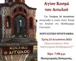 Την Τετάρτη 24 Αυγούστου πανηγυρίζει η ενορία Αγίου Κοσμά του Αιτωλού στο Ελευθεροχώρι Γιαννιτσών. ΕΟΡΤΑΣΤΙΚΟ ΠΡΟΓΡΑΜΜΑ ΤΡΙΤΗ 23/8 7:00 μ.μ. […]