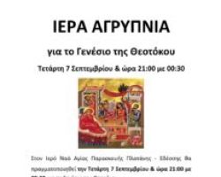 Στον ιερό ενοριακό ναό Αγίας Παρασκευής Πλατάνης Εδέσσης θα πραγματοποιηθεί την Τετάρτη 7 Σεπτεμβρίου, από 21:00 έως 00:30, ιερά Αγρυπνία […]