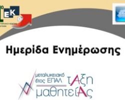 Ημερίδα Ενημέρωσης για το Μεταλυκειακό Έτος Μαθητείας ΕΠΑΛ, διοργανώνουν η Διεύθυνση Δευτεροβάθμιας Εκπαίδευσης Πέλλας και το 1ο Εργαστηριακό Κέντρο Γιαννιτσών, […]