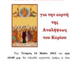 Την Τετάρτη 24 Μαΐου και ώρα 10:00 μ.μ. θα τελεσθεί αγρυπνία (όρθρος & Θεία Λειτουργία) στο Ιερό Παρεκκλήσιο του […]