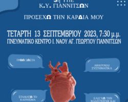 Με αφορμή την Παγκόσμια Ημέρα Καρδιάς, οι επαγγελματίες υγείας του ΚέντρουΥγείας Γιαννιτσών θα πραγματοποιήσουν την Τετάρτη 13 Σεπτεμβρίου 2023, ώρα 7:30 μ.μ., […]