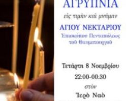 Την Τετάρτη 8 Νοεμβρίου από ώρα 10.00 μ.μ. έως 12.30 π.μ. στον Ιερό Ναό Αγίων Αποστόλων Πέτρου και Παύλου Γιαννιτσών […]
