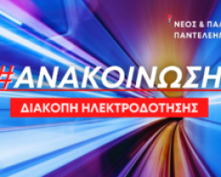 Σύμφωνα με ενημέρωση από τον ΔΕΔΔΗΕ έχει προγραμματιστεί η ακόλουθη διακοπή ηλεκτροδότησης: Ημέρα: Τετάρτη 15 Νοεμβρίου 2023 *Ώρες: 12:00 – […]