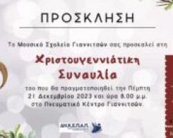 Το Μουσικό Σχολείο Γιαννιτσών στο πλαίσιο της Χριστουγεννιάτικης Γιορτής του σας προσκαλεί στη Συναυλία του που θα γίνει την Πέμπτη […]
