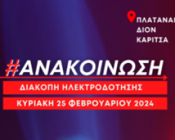 Σύμφωνα με ενημέρωση από τον ΔΕΔΔΗΕ, την Κυριακή 25 Φεβρουαρίου 2024 έχουν προγραμματιστεί οι παρακάτω διακοπές ηλεκτροδότησης: *Ώρες: 09:00 – 11:00 Θέσεις: […]