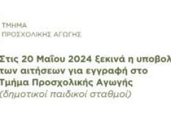 Στις 20 Μαΐου 2024 ξεκινά η υποβολή των αιτήσεων για εγγραφή στο Τμήμα Προσχολικής Αγωγής του Δήμου Δίου-Ολύμπου Τη Δευτέρα […]