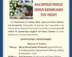 Την Παρασκευή 12 Ιουλίου, εορτή του Οσίου Παϊσίου του Αγιορείτου, πανηγυρίζει το ομώνυμο ιερό παρεκκλήσιο της ενορίας Αγίου Γεωργίου Γιαννιτσών. […]