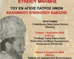Την Πέμπτη 8 Αυγούστου, εορτή του εν αγίοις πατρός ημών Καλλινίκου επισκόπου Εδέσσης, στον Ιερό Καθεδρικό Ναό Αγίας Σκέπης Εδέσσης […]