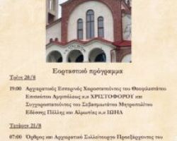 Την Τετάρτη 21 Αυγούστου πανηγυρίζει ο Ιερός Ναός Αγίας Βάσσης στην Έδεσσα. ΕΟΡΤΑΣΤΙΚΟ ΠΡΟΓΡΑΜΜΑ ΤΡΙΤΗ 20/8 7:00 μ.μ. Αρχιερατικός Εσπερινός […]