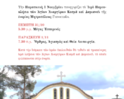 Την Παρασκευή 1 Νοεμβρίου πανηγυρίζει το Ιερό Παρεκκλήσιο των Αγίων Αναργύρων Κοσμά και Δαμιανού της ενορίας Μητροπόλεως Γιαννιτσών. ΠΕΜΠΤΗ 31/10 […]