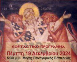 Την Παρασκευή 20 Δεκεμβρίου, μνήμη του αγίου και ενδόξου Ιερομάρτυρος Ιγνατίου του Θεοφόρου επισκόπου Αντιοχείας, πανηγυρίζει ο ιερός ναός των […]