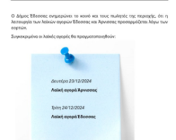 Δευτέρα 23-12-24 ‘Αρνισσα. Τρίτη 24-12-24 Έδεσσα.