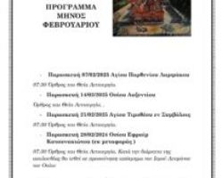 Πρόγραμμα ιερών ακολουθιών της Ιεράς Μονής Αγίας Παρασκευής Γιαννιτσών για τον μήνα Φεβρουάριο: ΠΑΡΑΣΚΕΥΗ 7/2 Αγίου Παρθενίου Λαμψάκου 7:30 π.μ. […]