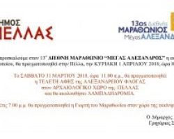 Στο πλαίσιο της διοργάνωσης του 13ου Διεθνούς Μαραθωνίου, το Σάββατο 31 Μαρτίου, θα πραγματοποιηθεί τελετή Αφής της Αλεξανδρείου Φλόγας στον […]