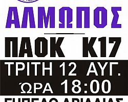 Στα πλαίσια της προετοιμασίας του για τη νέα σεζόν, ο Αλμωπός Αριδαίας θα αντιμετωπίσει σε φιλικό παιχνίδι την ομάδα Κ-17 […]