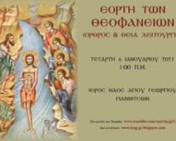 Την Τετάρτη 6 Ιανουαρίου 2021, στις 7:00 π.μ., ο Ιερός Ναός Αγίου Γεωργίου Γιαννιτσών θα μεταδώσει διαδικτυακά τον Όρθρο και […]