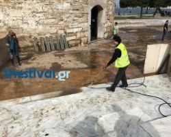 Εργασίες καθαριότητας πραγματοποιούνται από το πρωί στον Λευκό Πύργο, προκειμένου να αποκατασταθούν οι ζημιές που προκλήθηκαν από τη χθεσινή θεομηνία. […]