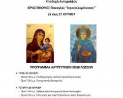 Την Τετάρτη 26 Ιουλίου, στις 9:00 μ.μ., θα τελεσθεί Αγρυπνία εις τιμήν και μνήμην του αγίου και ενδόξου Μεγαλομάρτυρος Παντελεήμονος […]