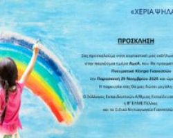 Με αφορμή την Παγκόσμια Ημέρα Ατόμων με Αναπηρία (ΑμεΑ), ο Σύλλογος Εκπαιδευτικών Πρωτοβάθμιας Εκπαίδευσης Γιαννιτσών, η Β΄ΕΛΜΕ Πέλλας και το Ειδικό Νηπιαγωγείο Γιαννιτσών διοργανώνουν την Παρασκευή 29 Νοεμβρίου 2024 […]