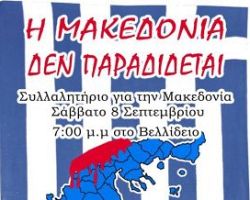 Το Σάββατο 8 Σεπτεμβρίου 2018 και ώρα 19:00 καλούμε όλους τους Έλληνες έξω από το συνεδριακό κέντρο «Ιωάννης Βελλίδης» της […]