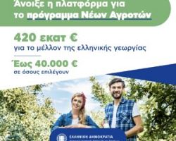 Άνοιξε, σήμερα 12 Νοεμβρίου, η πλατφόρμα για το πρόγραμμα για το πρόγραμμα Νέων Αγροτών https://www.ependyseis.gr/mis/(S(q1f44cqgwdaqeovcpjbu5xsi))/System/Login.aspx?Re turnUrl=%2fmis%2fdefault.aspx . Για την […]