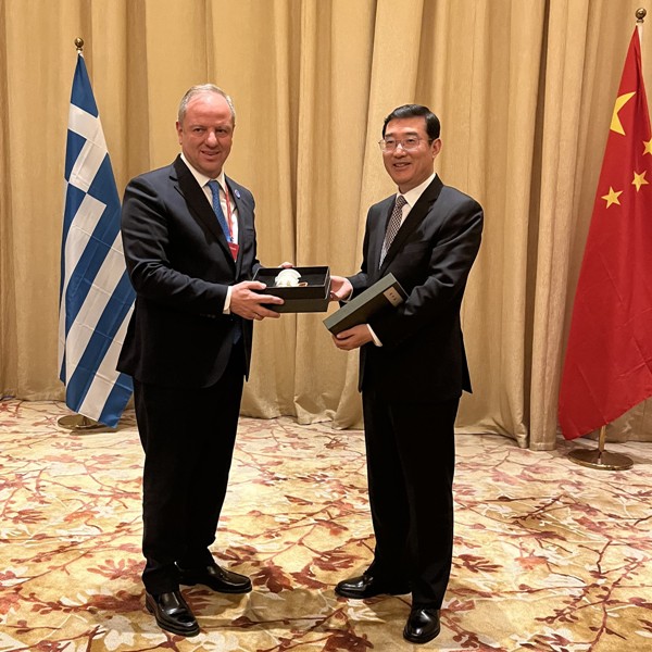 Στο περιθώριο της συμμετοχής του στον 7ο Διάλογο μεταξύ της Κίνας και των χωρών Κεντρικής και Ανατολικής Ευρώπης ο Έλληνας Υφυπουργός πραγματοποίησε διμερή συνάντηση με τον Υφυπουργό και μέλος της Επιτροπής του CPC της Γενικής Διοίκησης Τελωνείων της Λαϊκής Δημοκρατίας της Κίνας, κ. Zhao Zenglian, παρουσία του Πρέσβη της Ελλάδας στην Κίνα, Δρ. Ευγενίου Καλπύρη, κατά την οποία συζητήθηκαν θέματα με έμφαση στην ενίσχυση και διευκόλυνση του διμερούς εμπορίου μεταξύ Ελλάδας και Κίνας στον αγροδιατροφικό τομέα.