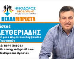 • Θεόδωρος Θεοδωρίδης: «Είμαστε όλοι μαζί, χωρίς ταμπέλες, χωρίς διαχωριστικά για τον τόπο μας. Κόντρα στις προθέσεις και τις διαθέσεις […]