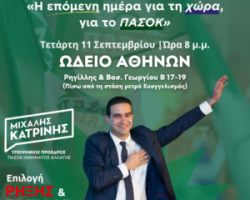 Την πρόταση του για τη Μεγάλη Παράταξη και το ΠΑΣΟΚ της επόμενης μέρας, θα παρουσιάσει ο Μιχάλης Κατρίνης, την Τετάρτη 11 Σεπτεμβρίου, […]