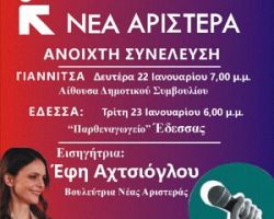 Ανοιχτές συνελεύσεις της Νέας Αριστεράς στα Γιαννιτσά και στην Έδεσσα με την Έφη Αχτσιόγλου Συγκροτείται με γοργούς ρυθμούς ο κομματικός […]