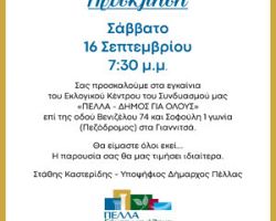 ΚΑΣΤΕΡΙΔΗΣ – ΠΕΛΛΑ ΔΗΜΟΣ ΓΙΑ ΟΛΟΥΣ Το Σάββατο 16 Σεπτεμβρίου – 19:30 τα εγκαίνια του Εκλογικού Κέντρου το Συνδυασμού […]
