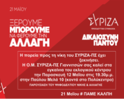 Η πολιτική αλλαγή στις 21 Μαϊου είναι απόλυτα αναγκαία για την μεγάλη κοινωνική πλειοψηφία Συντοπίτες και συντοπίτισσες, Έφθασε η στιγμή […]
