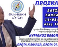 Περιοδεία στην πόλη της Έδεσσας θα πραγματοποιήσει αύριο Σάββατο 14 Μαΐου 2022, ο Πρόεδρος της Ελληνικής Λύσης Κυριάκος Βελόπουλος, συνοδεία […]