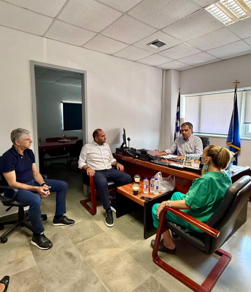 Ο Βουλευτής Πέλλας της Νέας Δημοκρατίας Λάκης Βασιλειάδης επισκέφτηκε το πρωί της Πέμπτης τη Νοσοκομειακή Μονάδα Έδεσσας όπου συναντήθηκε με τον νέο Διοικητή του Γενικού Νοσοκομείου Πέλλας για να του ευχηθεί, μεταξύ άλλων, καλή επιτυχία στα νέα του καθήκοντα. Με την ευκαιρία της επίσκεψης, ο Βουλευτής συναντήθηκε επίσης με την Διευθύντρια της Ιατρικής Υπηρεσίας κ. Έ. Ταμβίσκου, την Διευθύντρια της Νοσηλευτικής Υπηρεσίας κ. Μ. Χρήστου, τον Πρόεδρο του Επιστημονικού Συμβουλίου κ. Ν. Σαπίδη, και την Εκπρόσωπο του Σωματείου Εργαζομένων της Ν.Μ. Έδεσσας κ. Ε. Γκέλου. Είχανε την δυνατότητα να συζητήσουνε για τις ανάγκες αλλά και τις δυνατότητες ενίσχυσης του Νοσοκομείου Έδεσσας και για τις ενέργειες που χρειάζεται να σχεδιαστούν το επόμενο διάστημα.