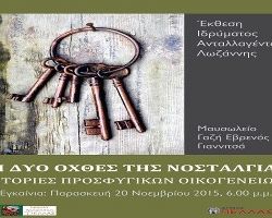 Έκθεση Ιδρύματος Ανταλλαγέντων Λωζάννης ΟΙ ΔΥΟ ΟΧΘΕΣ ΤΗΣ ΝΟΣΤΑΛΓΙΑΣ ΙΣΤΟΡΙΕΣ ΠΡΟΣΦΥΓΙΚΩΝ ΟΙΚΟΓΕΝΕΙΩΝ Η Εφορεία Αρχαιοτήτων Πέλλας και ο Δήμος […]