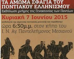 ΕΚΔΗΛΩΣΕΙΣ ΜΝΗΜΗΣ ΣΤΟ ΜΕΣΙΑΝΟ «ΤΑ ΑΜΩΜΑ ΣΦΑΓΙΑ ΤΟΥ ΕΛΛΗΝΙΣΜΟΥ ΤΟΥ ΠΟΝΤΟΥ» Εκδήλωσεις μνήμης της Γενοκτονίας του Ποντιακού Ελληνισμού Επιχειρώντας να […]