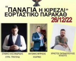 Ο Σύλλογος Ποντίων Δάφνης Παναγία η Κίρεζλι σας προσκαλεί στο Εορταστικό Παρακαθ την Δευτέρα 26 Δεκεμβρίου , ώρα 21:00μ.μ Θα […]
