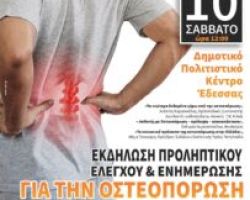 Ο Σύλλογος Σκελετικής Υγείας, Πεταλούδα σε συνεργασία με το Ελληνικό Διαδημοτικό Δίκτυο Υγειών Πόλεων και ο ΔΗΜΟΣ ΕΔΕΣΣΑΣ διοργανώνουν σημαντική […]
