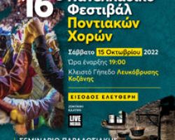 Το 16ο Πανελλαδικό Φεστιβάλ Ποντιακών Χορών είναι πλέον γεγονός! Μετά από δύο χρόνια απουσίας εξαιτίας της πανδημίας, η Παμποντιακή Ομοσπονδία Ελλάδος […]