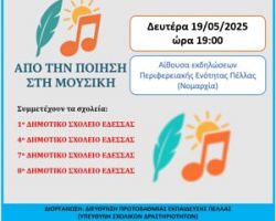 Η Διεύθυνση Πρωτοβάθμιας Εκπ/σης Πέλλας, στο πλαίσιο των Σχολικών Δραστηριοτήτων και σε συνεργασία με τον Δήμο Έδεσσας, διοργανώνει μουσική εκδήλωση […]