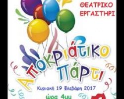 «ΑΠΟΚΡΙΑΤΙΚΟ ΠΑΡΤΥ ΜΕ ΤΟ ΘΕΑΤΡΙΚΟ ΕΡΓΑΣΤΗΡΙ» Στους ξέφρενους ρυθμούς του καρναβαλιού καλούνται να διασκεδάσουν τα παιδιά του Θεατρικού Εργαστηρίου, […]