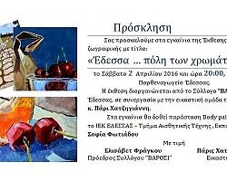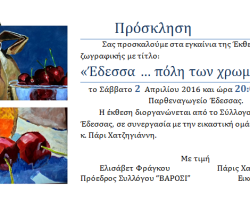 Ο Πολιτιστικός Σύλλογος «ΒΑΡΟΣΙ» Έδεσσας, σε συνεργασία με την Εικαστική Oμάδα του κ. Πάρι Χατζηγιάννη, διοργανώνει Έκθεση ζωγραφικής, με τίτλο: […]