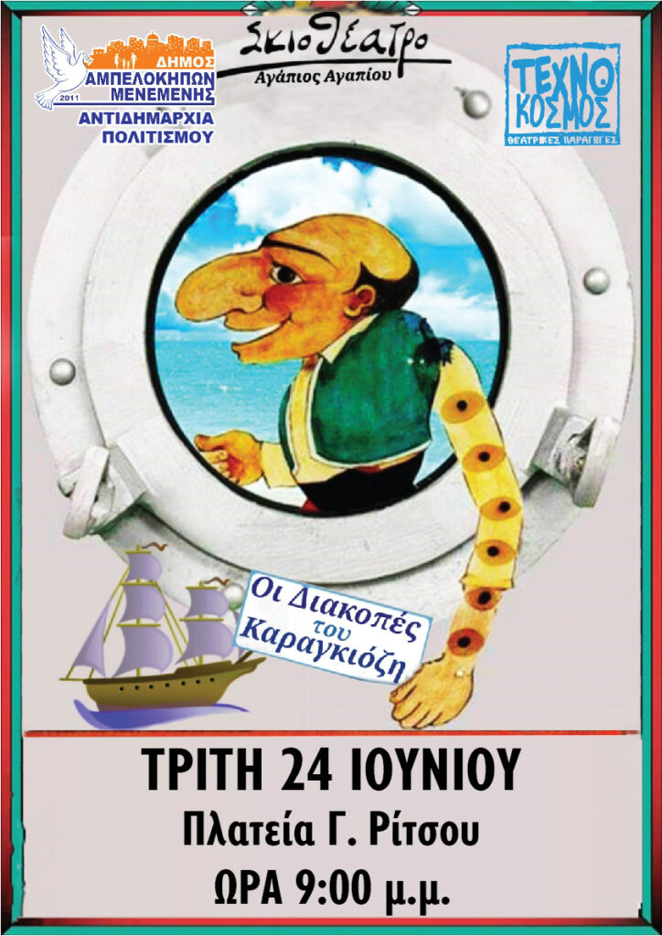 Αυτό το καλοκαίρι, ο Δήμος Αμπελοκήπων-Μενεμένης προσκαλεί μικρούς και μεγάλους σε ένα μαγευτικό ταξίδι στον κόσμο του Θεάτρου Σκιών. Ο αγαπημένος μας Καραγκιόζης επιστρέφει στις πλατείες της πόλης με ξεκαρδιστικές παραστάσεις, γεμάτες γέλιο, φαντασία και... μαγειρικές περιπέτειες.