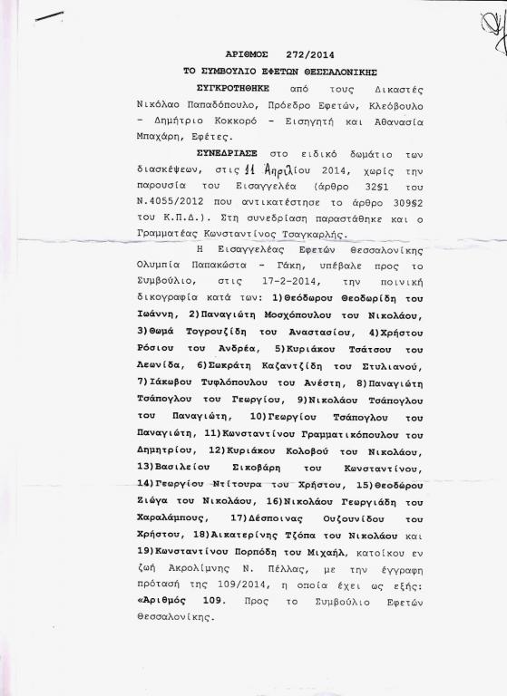 Και εκεί που την περασμένη εβδομάδα, προφανώς με στόχο την σπίλωση ονομάτων, κυκλοφόρησε ως φειγ βολάν στην Κρύα Βρύση φωτοτυπημένο το έγγραφο της Εισαγγελίας Πρωτοδικών Γιαννιτσών με ημερομηνία 21 Μαΐου 2013 και γνωστοποιούσε την ποινική δίωξη, συνολικά 19 προσώπων, εκ των οποίων τριών εν ενεργεία πολιτικών προσώπων, των οποίων τα ονόματα αναγράφονταν ολογράφως και των υπολοίπων μόνο τα αρχικά, εκδόθηκε από το Συμβούλιο Εφετών Θεσσαλονίκης με υπ. αριθ. απόφαση 272/2014 το απαλλακτικό βούλευμα από πάσα κατηγορία και των 19 προσώπων ανάμεσά τους και οι Θεόδωρος Θεοδωρίδης, Τσάτσος Κυριάκος και Καζαντζίδης Σωκράτης. Με την ίδια απόφαση καταργεί τους περιοριστικούς όρους εξόδου από την χώρα που τους είχε επιβληθεί, όλων των παραπάνω προσώπων και διατάσσει την απόδοση της χρηματικής εγγύησης σε αυτούς που την είχαν καταθέσει. Η παραπάνω απόφαση εκδόθηκε στις 11 Απριλίου 2014 . Η δικαστική αυτή υπόθεση που κράτησε για 12 ολόκληρα χρόνια (από τον Αύγουστο του 2002) εμπλέκοντας τρεις διαφορετικές δημοτικές αρχές, επηρέαζε σε μεγάλο βαθμό κάθε φορά τις εκλογές που διεξήχθησαν στο μεσοδιάστημα στον πρώην δήμο Κρύας Βρύσης. Η τελεσίδικη αυτή απόφαση κλείνει οριστικά ένα δυσάρεστο κλίμα που είχε διαμορφωθεί στις σχέσεις μεταξύ γνωστών, φίλων και συγγενικών προσώπων της πόλης μας, με την ελπίδα να μην δημιουργηθούν ξανά παρόμοιες καταστάσεις. Όσο για την συγκυρία να εμφανιστεί πριν από λίγες ημέρες ως φειγ βολάν σε δημόσιους χώρους της πόλης, φωτοτυπημένο το έγγραφο της ποινικής δίωξης της Εισαγγελίας Πρωτοδικών Γιαννιτσών, με προφανή στόχο τον επηρεασμό του εκλογικού σώματος, μάλλον εκθέτει ανεπανόρθωτα τους εμπνευστές του, έχοντας καταφέρει το αντίθετο αποτέλεσμα, μετά μάλιστα και την τελεσίδικη απόφαση του Συμβουλίου Εφετών Θεσσαλονίκης για την υπόθεση ! Εμείς επικοινωνήσαμε με τον δικηγόρο συντοπίτη μας Αλέξη Βλάχο, συνήγορο υπεράσπισης πολλών εκ των εμπλεκομένων προσώπων, ο οποίος φειδωλός και συγκεκριμένος στην διατύπωσή του, μας τόνισε ότι ΄΄η δικαιοσύνη έκανε απρόσκοπτα την δουλειά της, ενώ αποδείχθηκε για μία ακόμη φορά, ότι όσοι προσπαθούν να εκμεταλλευτούν μη τελεσίδικες δικαστικές αποφάσεις για μικροπολιτικά οφέλη, μάλλον τους αφήνουν εκτεθειμένους στην συνείδηση των πολιτών ! ΄΄