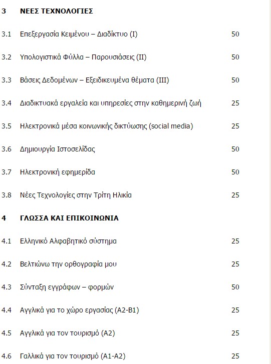 Στο Κ.Δ.Β.Μ του Δήμου Έδεσσας μπορούν να δημιουργηθούν τμήματα για τα ακόλουθα προγράμματα: